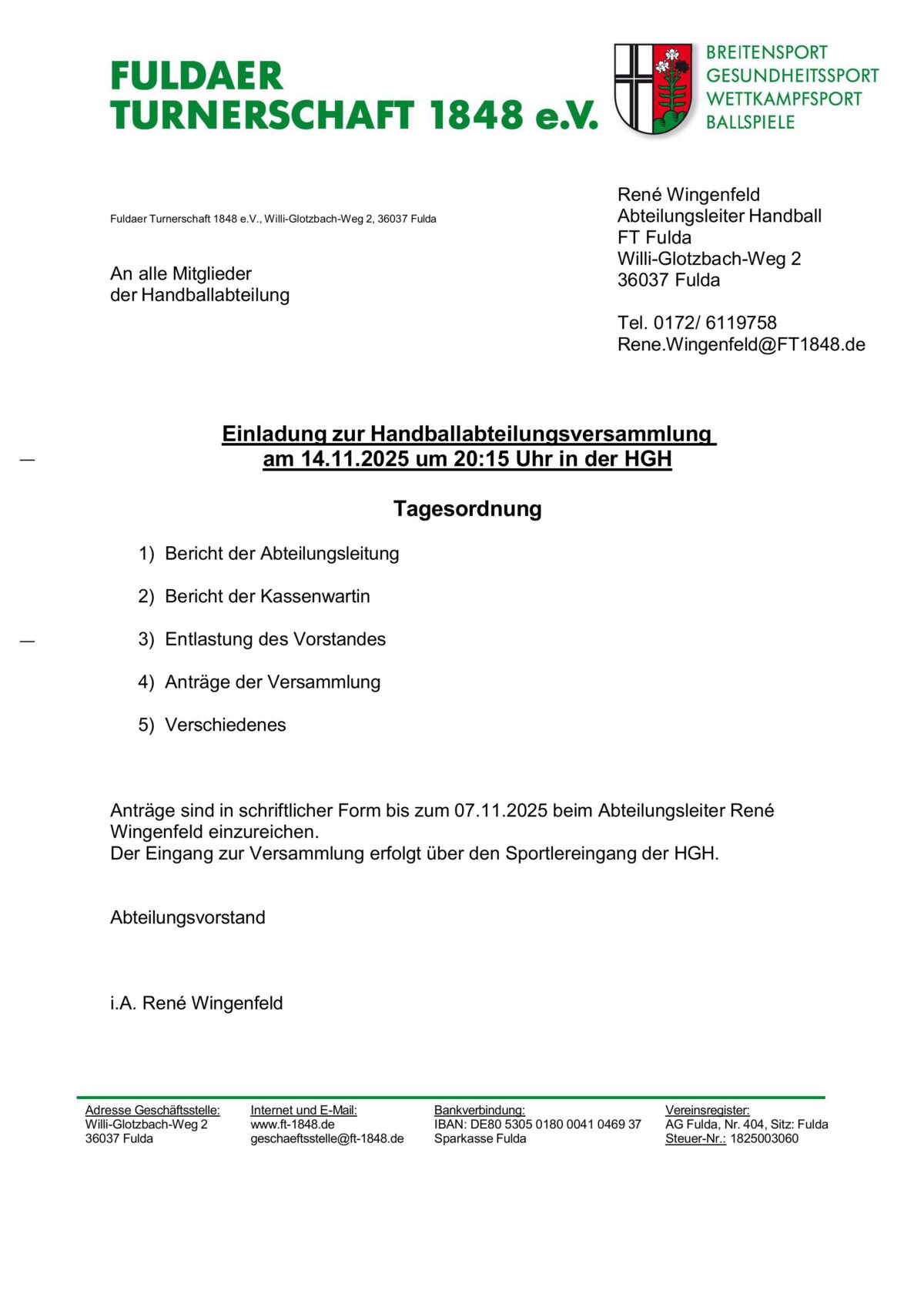 Willkommen auf der Webseite der Handballabteilung von FT Fulda